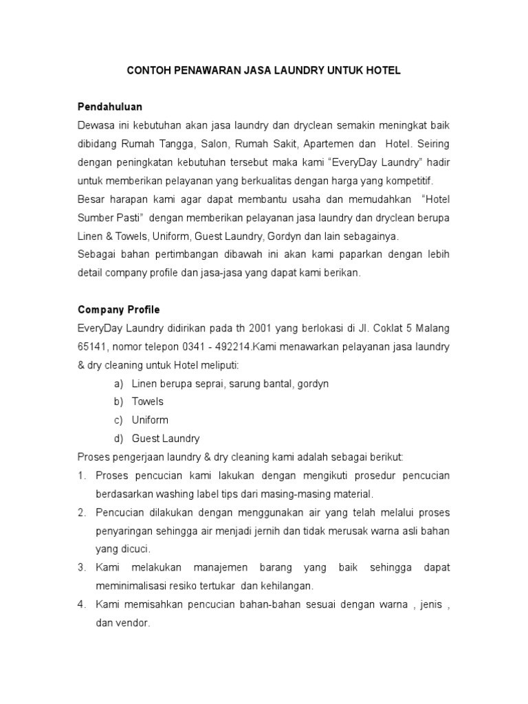 Contoh Proposal Laundry Untuk Hotel Pdf